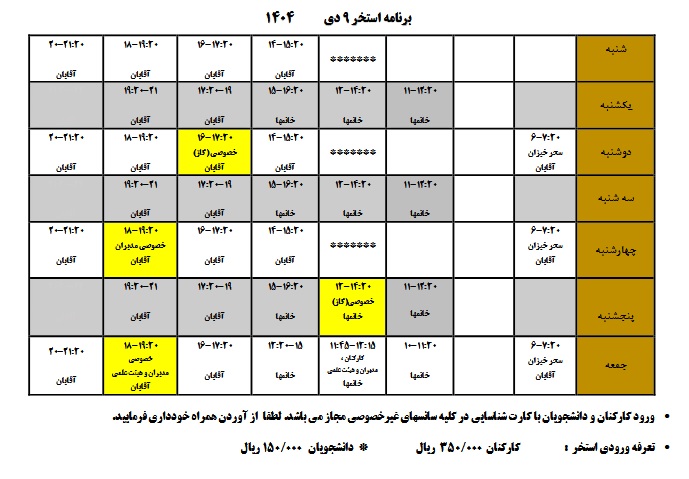 اصغر حسینی نژاد مسئول استخر 9 دی تلفن : 3318 |