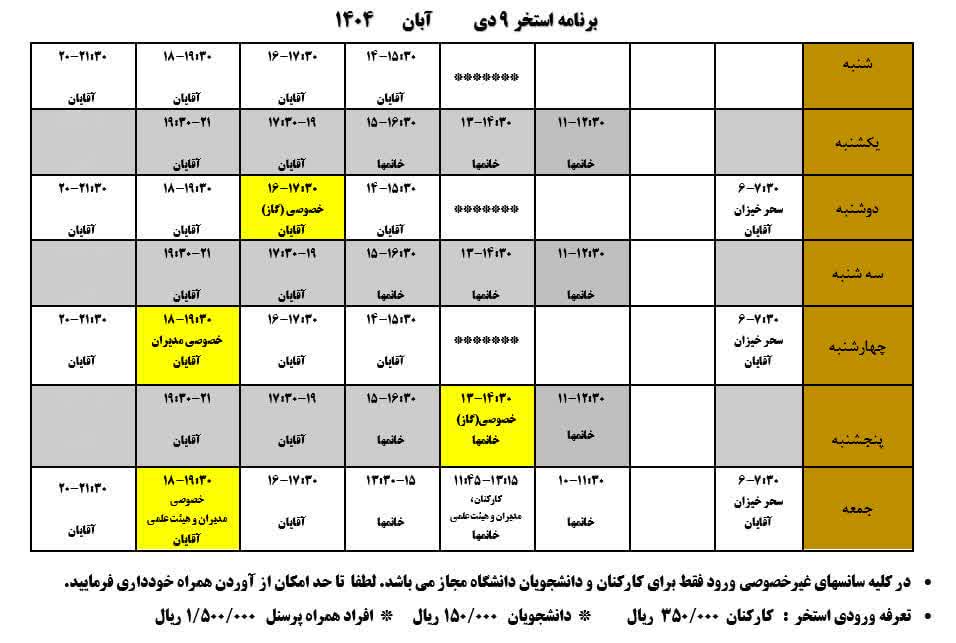 اصغر حسینی نژاد مسئول استخر 9 دی تلفن : 3318 |
